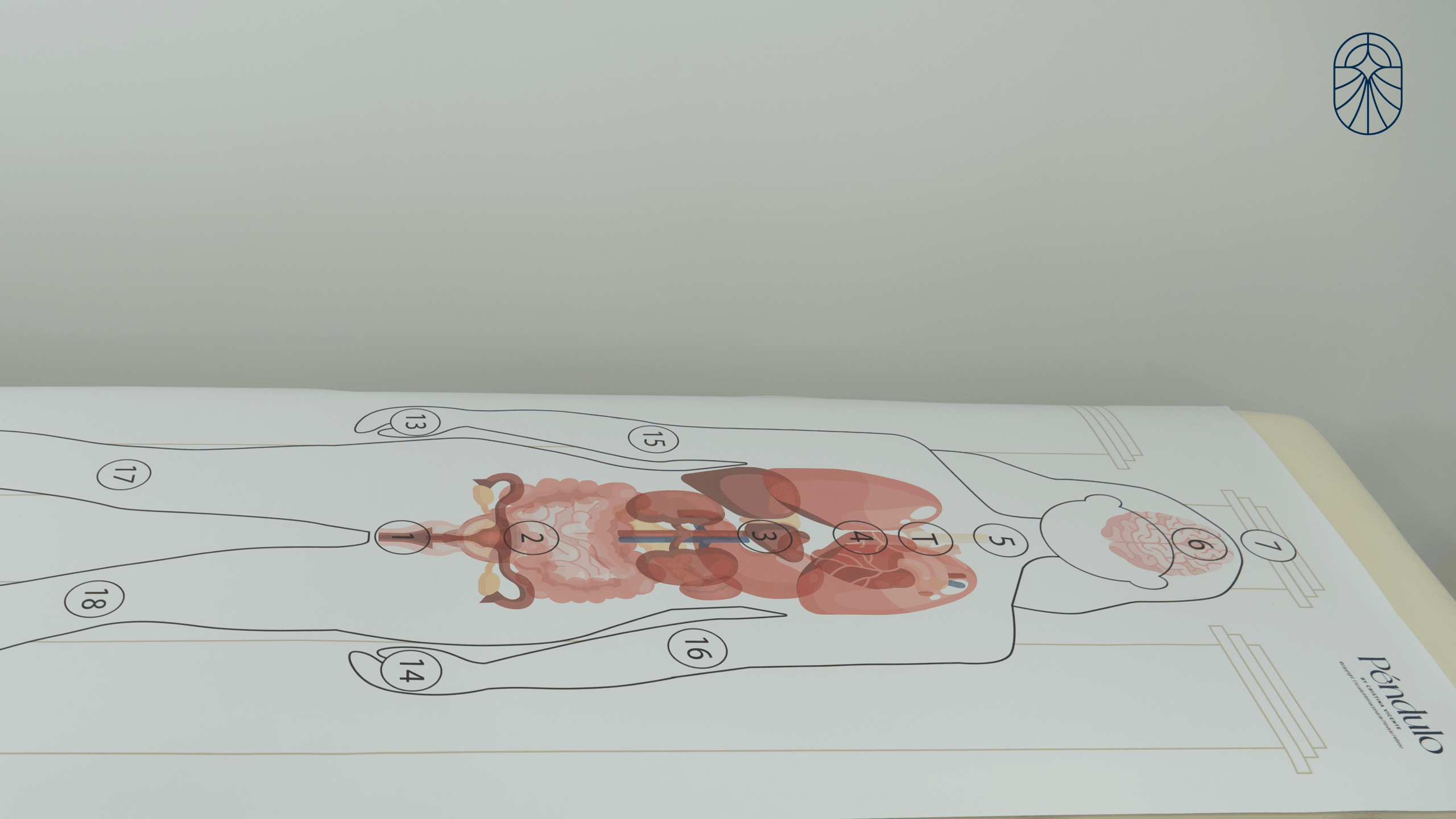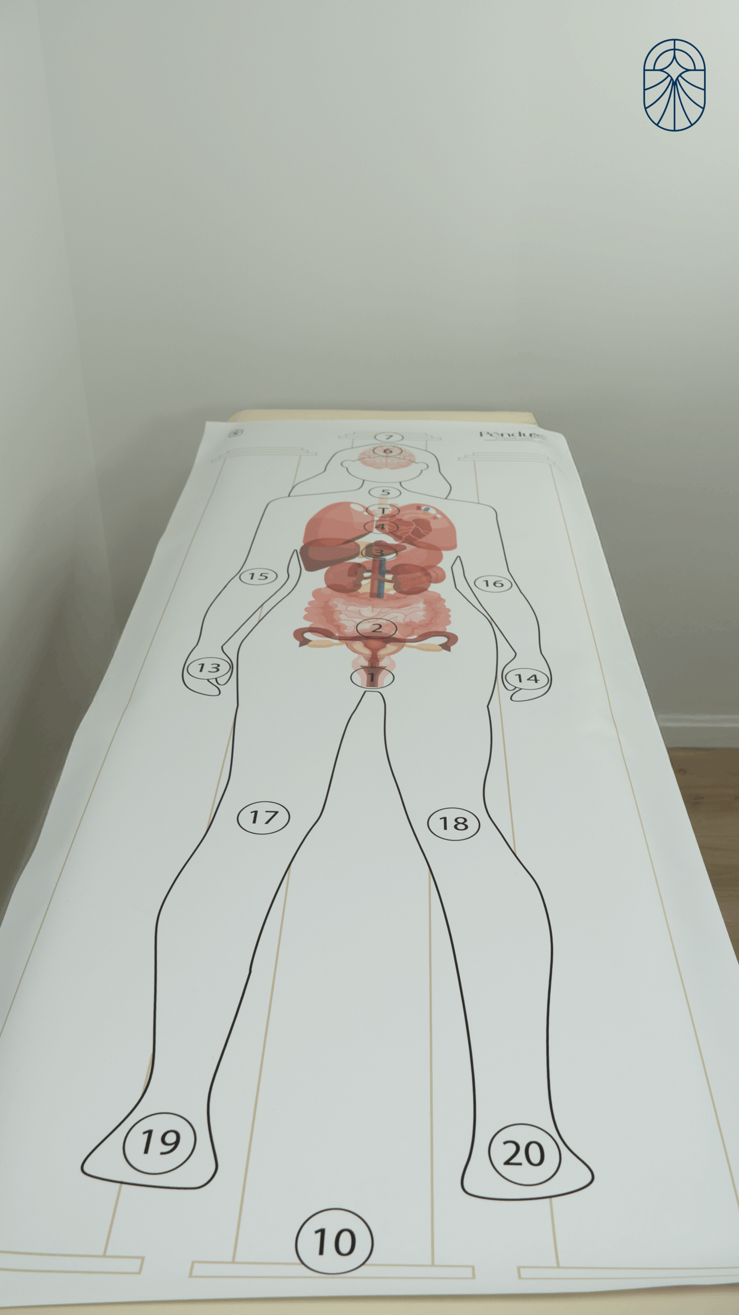 Silueta de mujer con los órganos dibujados y también con los 7 chakras marcados (incluyendo el timo) para que puedas realizar tus sesiones de Péndulo Hebreo. Esta silueta se puede utilizar para autotratamientos y para tratamientos a otras personas y también a niños.